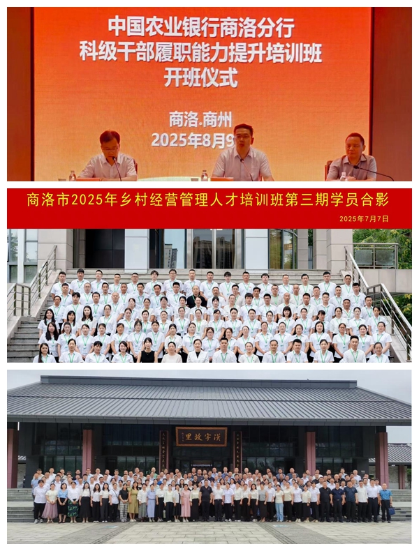 学院培训中心紧扣乡村振兴、干部履职、教育发展等重点领域,精心打造8 个专项培训项目,覆盖乡村人才、企业干部、教育管理者及教师等群体,累计培训超 800 人次。在乡村振兴领域,举办 “商洛市第三期乡村经营管理人才培训”,100 多名学员通过系统学习提升经营管理能力,为乡村产业振兴夯实根基;企业赋能方面,为中国农业银行商洛分行量身开展 “科级干部履职能力提升培训”,56 名科级干部聚焦履职能力与作风建设集中学习,学院杨增强教授作《深刻领会中央八项规定精神,以作风建设助推中国式现代化建设》专题报告,助力干部筑牢作风防线;党建教育领域,组织 “市直机关基层党支部书记示范培训班” 赴洛南开展红色教育,160 名党支部书记在沉浸式研学中强化党性修养。