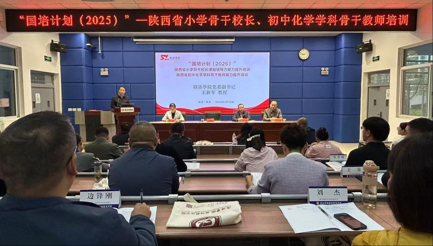 9月18日,商洛学院在多媒体18教室隆重举行“国培计划(2025)”陕西省小学骨干校长课程领导力提升培训与农村初中化学骨干教师能力提升培训联合开班典礼,校党委副书记王新军教授出席,继续教育学院院长付军昌和全省百余名教育工作者参加,继续教育学院副院长杨艳主持开班仪式。