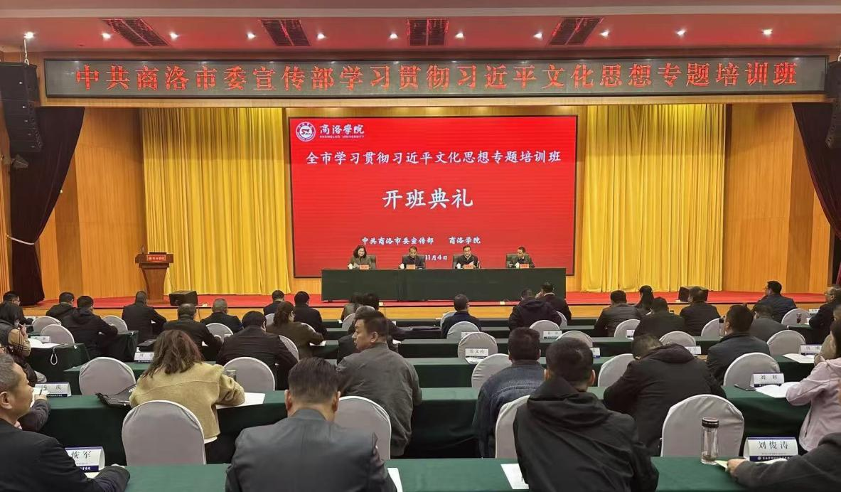 11 月 4 日上午,由中共商洛市委宣传部主办、商洛学院继续教育学院承办的全市宣传思想文化系统学习贯彻习近平文化思想专题培训班,在商洛学院继续教育培训基地会议厅正式开班。中共商洛市委宣传部常务副部长王永祥、商洛学院党委副书记王新军教授出席典礼,商洛学院继续教育学院院长付军昌、副院长杨艳及全市一百二十余名宣传文化系统人员参加活动。开班典礼由杨艳主持。